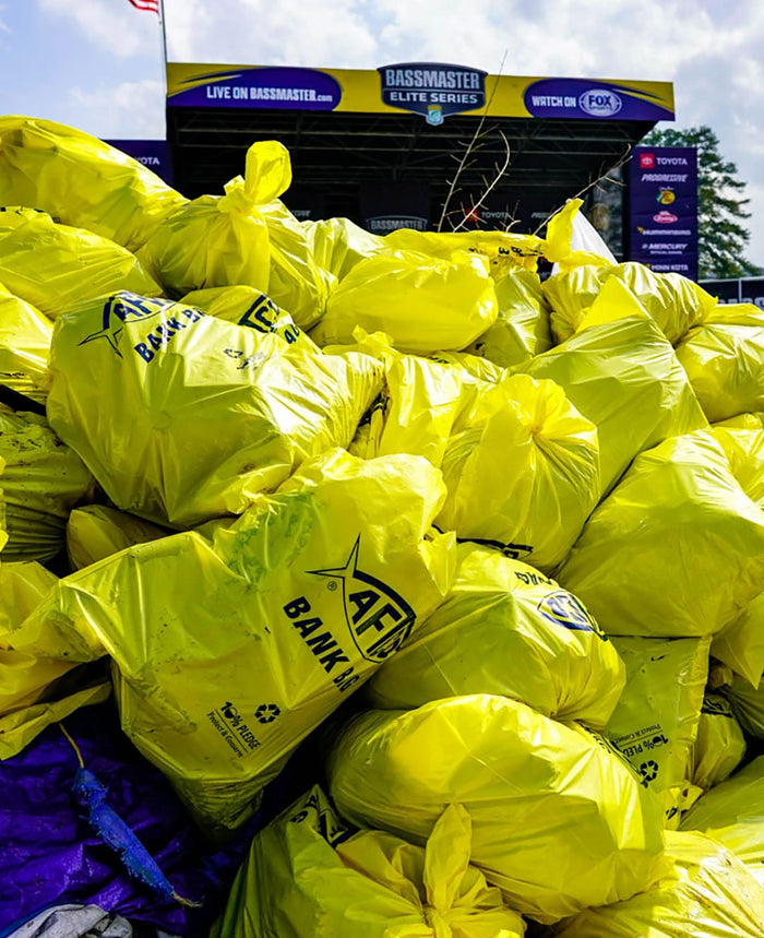 The Bank Bag incentive program utilizes community resources to make a difference in local waterways. Bank Bags are provided to patrons, tournament organizations, retail customers, and schools. Individuals who return a filled Bank Bag receive a $25 aftco.com gift card.