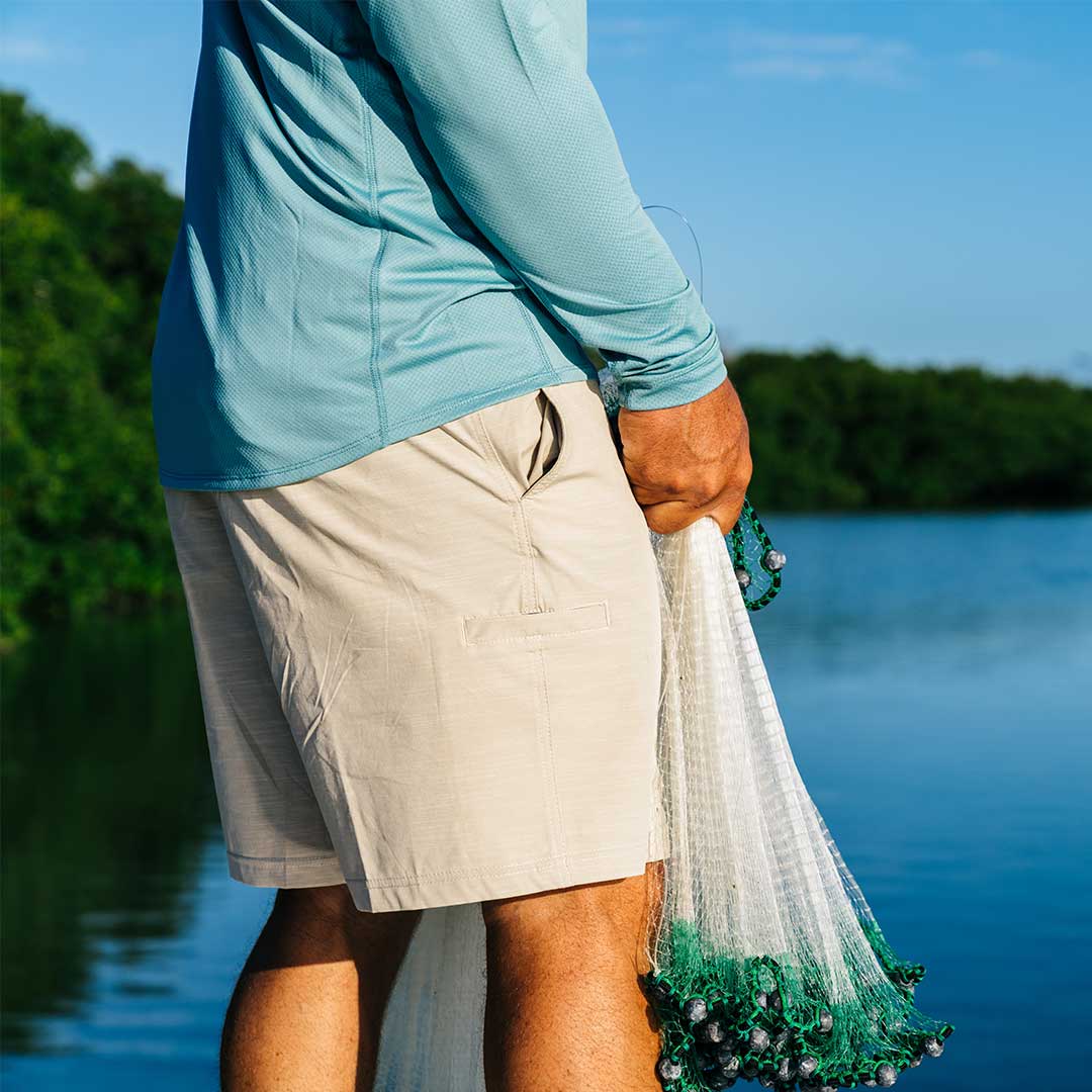 A pair of shorts to be used 365 days of the year. The Hybrid Chino style was created with a blend of polyester, cotton, and spandex making these shorts great for working around the house, or at a casual dinner. Equipped with everything you need for a good time on the water, plier pockets, and a hidden zipper built into the pocket for hidden items. These shorts feature durable, lightweight 4-way stretch nylon, DWR coating treatment, and plenty of pocket storage for all your fishing essentials.