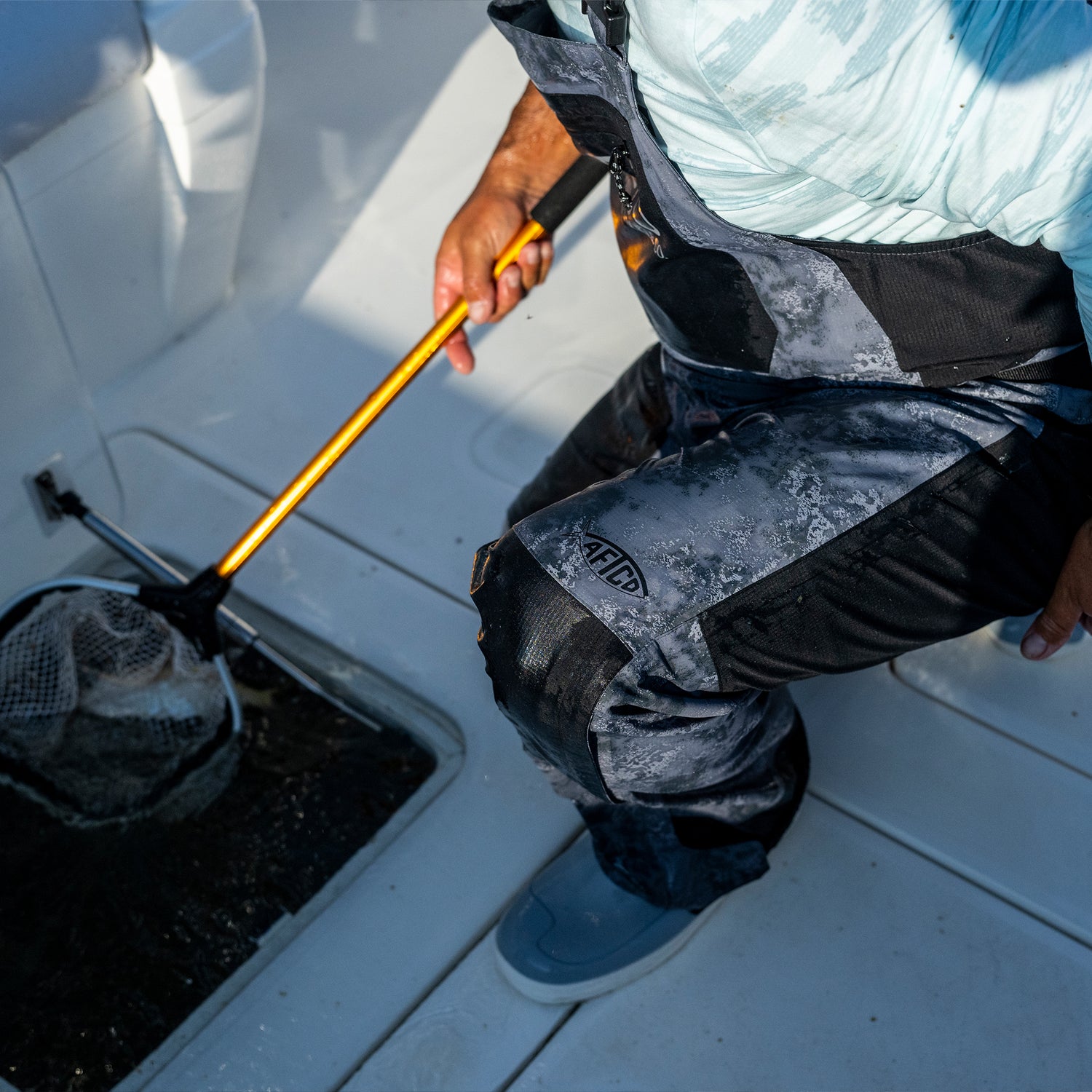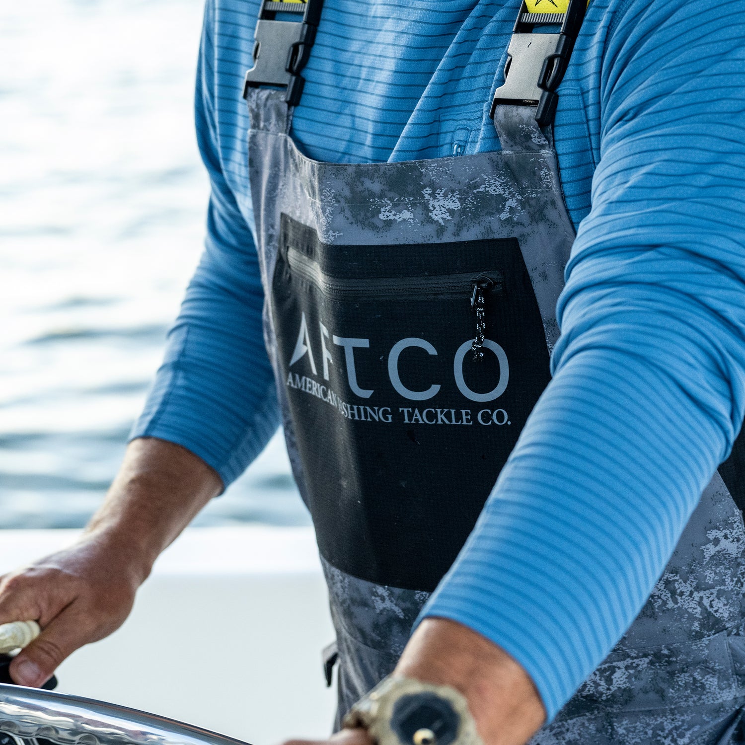 The Barricade Bib provides everything you'll need to stay dry in foul weather conditions. Pair with the Barricade Jacket for a complete rain gear system. The Barricade Bib is equipped with 3L 100% polyester ripstop construction, 20K water resistance, 15K Breathability, and YKK zippers on the chest pocket to keep any loose items sealed. A plier pocket found on the thigh with 500D nylon that will make this a piece you can layer down when weather conditions warm up. Comfortable signature AFTCO jacquard elastic adjustable shoulder straps along with a waist side adjustment system will make this bib comfortable while casting for big fish.