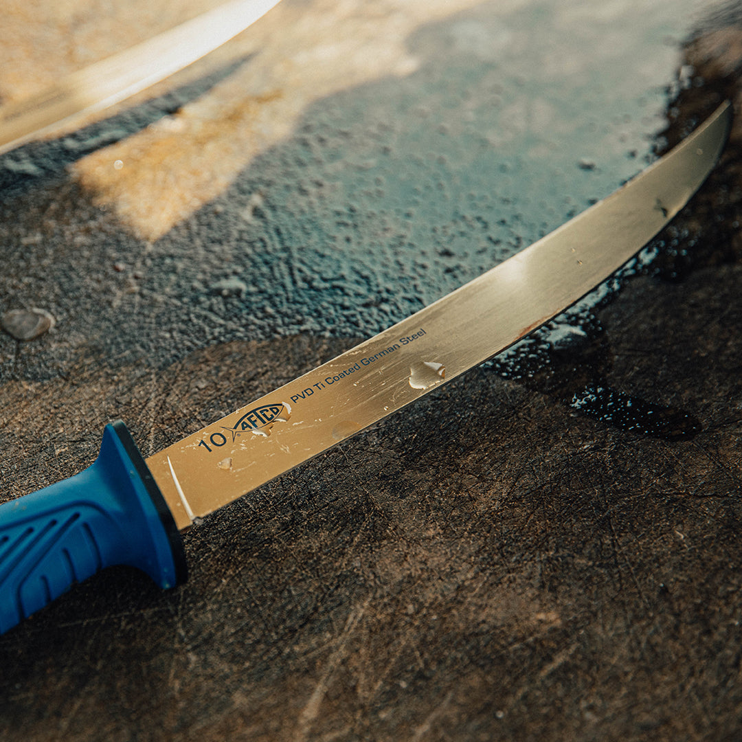 - Up sweep blade design maintains cutting surface when filleting game fish