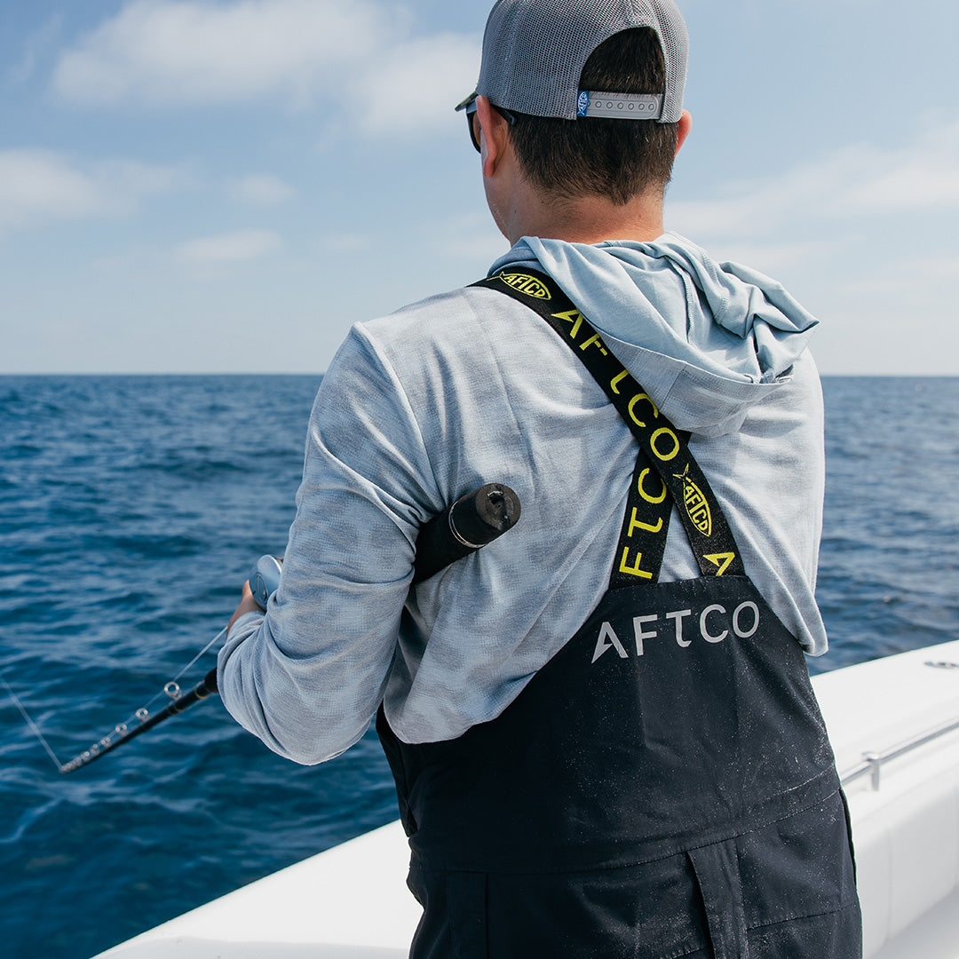 Your Fortress from the storm. When it comes to staying dry, Fortress over-delivers. It's the most premium, top-tier bib option in the AFTCO outerwear lineup. Constructed with a Toray® 100% nylon membrane that’s 30K waterproof and 7K breathable, it features a reinforced pliers pocket, ultra-comfortable shoulder straps, a kill switch D-ring attachment for safety, and an articulated fit that's ergonomically shaped to your body to provide a greater range of motion and reduce resistance during movement.