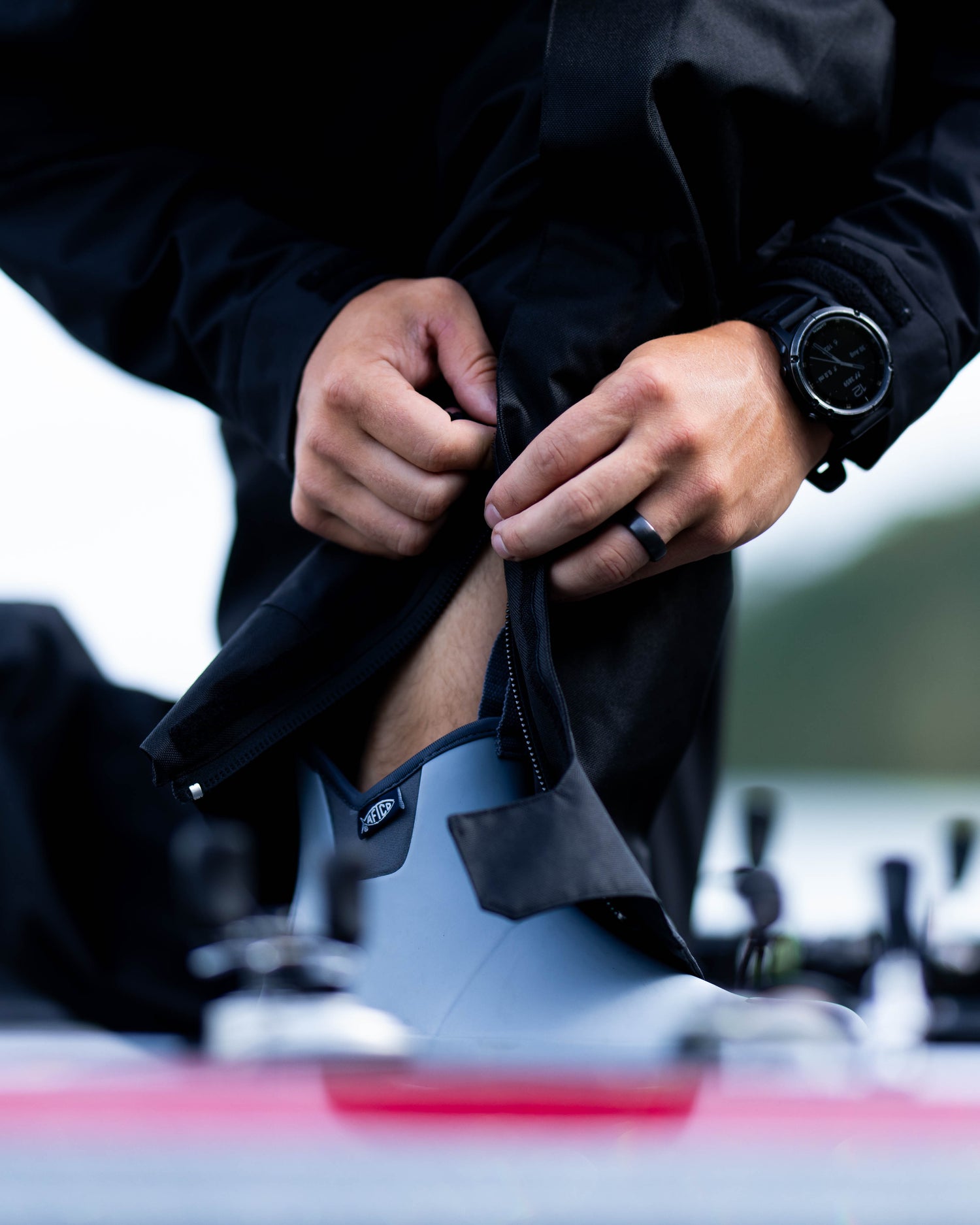 Built and inspired by our Hydronaut foul weather system, with a 30K 2-layer 100% nylon shell to keep you dry when it matters the most. The Hydro waterproof fishing bibs deliver the same level of heavy-duty durability as the original Hydronaut, but feature adjustable elastic shoulder straps for the angler who prefers a more traditional shoulder strap system. Enjoy all the other creature comforts like brushed tricot hand warmer pockets, knee high side zippers. reinforced knees, reinforced hem, 300D pliers pocket, and safety d-ring.