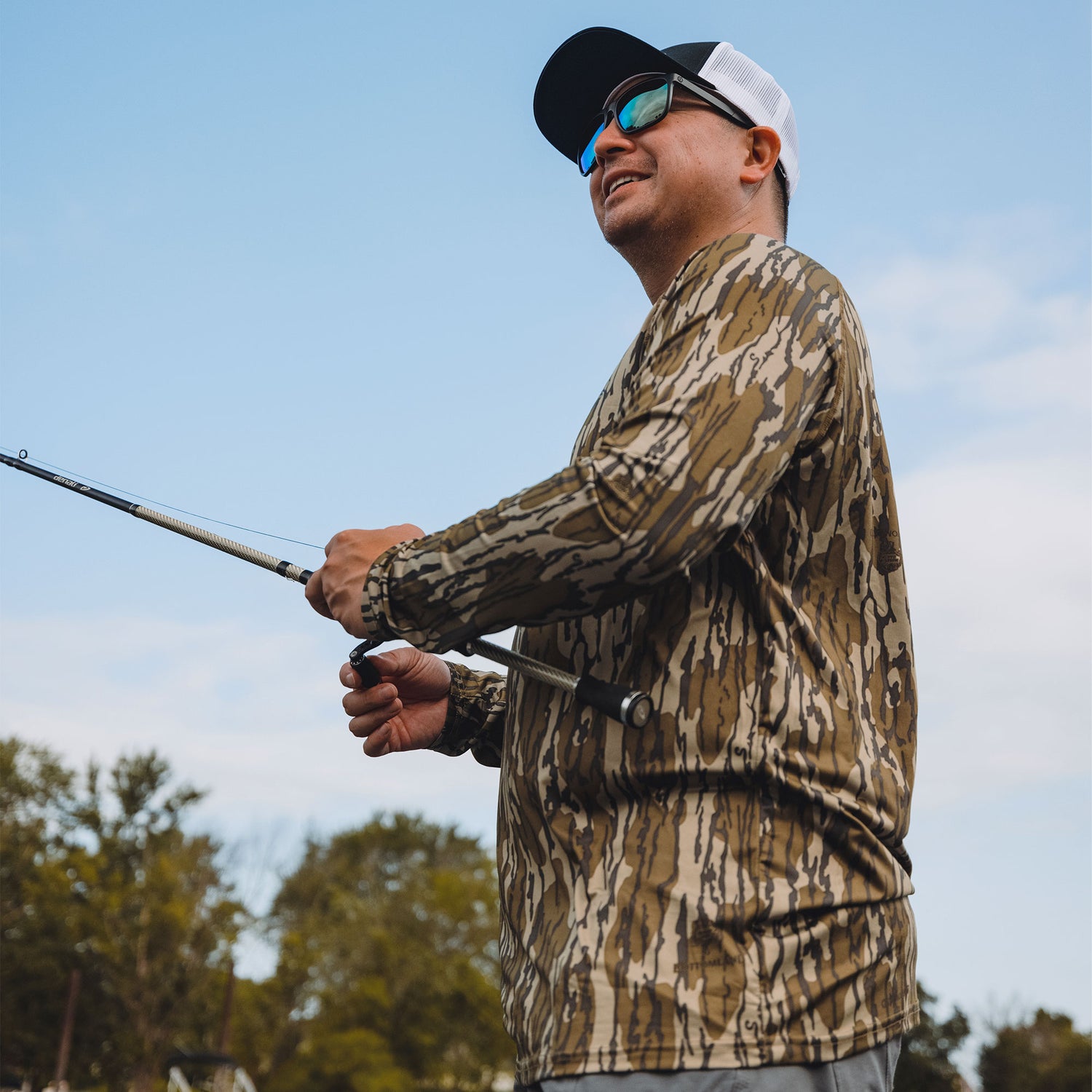 Mossy Oak® Camo Long Sleeve Performance shirt is a crew neck that comes in three of Mossy Oak® most popular patterns. Stay hidden in a 88% polyester 12% Spandex shirt with quick drying fabric & UPF 50 sun protection. Perfect for the great outdoors, you'll be well hidden in the woods ready for your next catch.