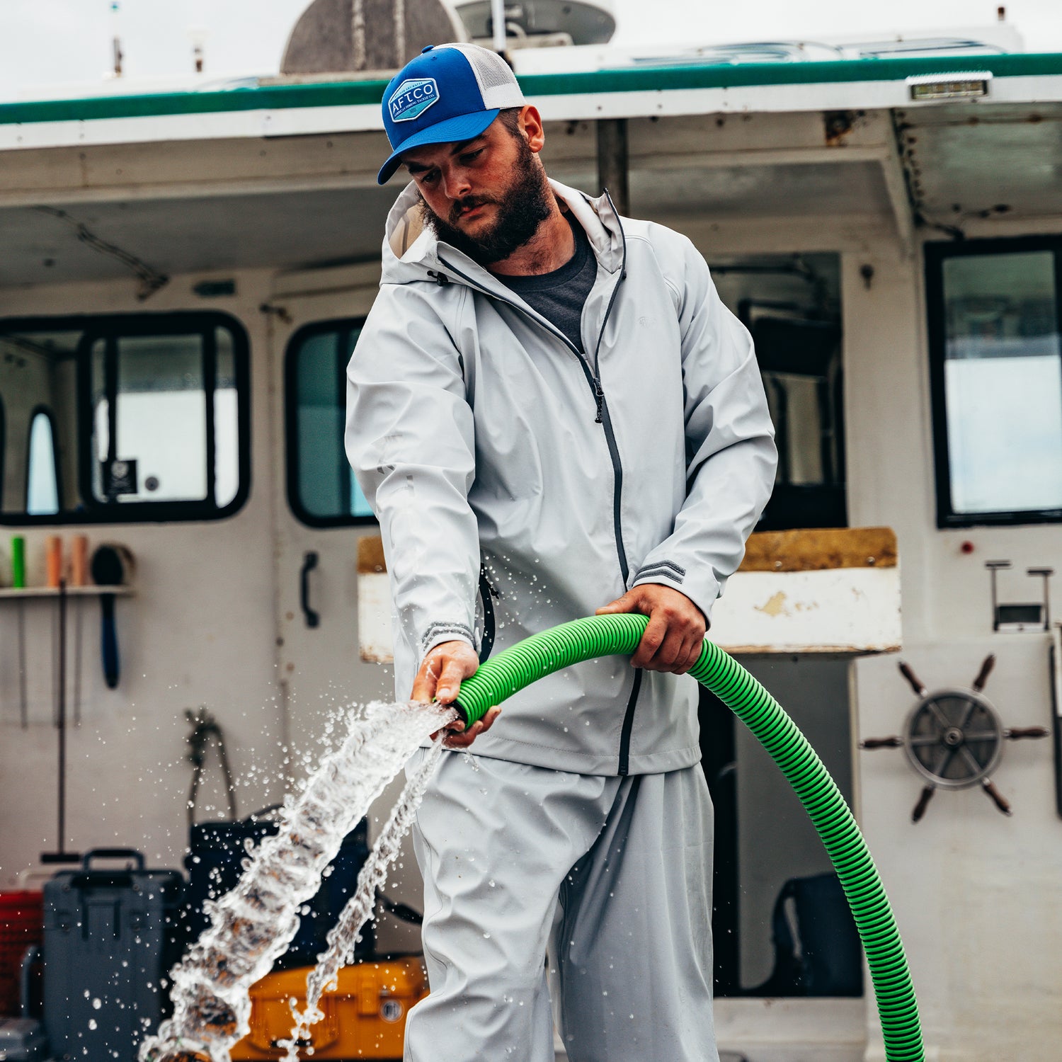 Take on rough and windy seas in style with the Seafarer Jacket. This waterproof PU-coated 100% polyester fishing jacket will protect you from the elements as an outer shell layer. Seafarer easily adjusts and battens down to meet your needs with its two-way hood and hook and loop cuff adjustments. Combine the Seafarer Jacket with the Seafarer bibs for the ultimate foul weather slickers to handle all that mother nature wants to throw at you.