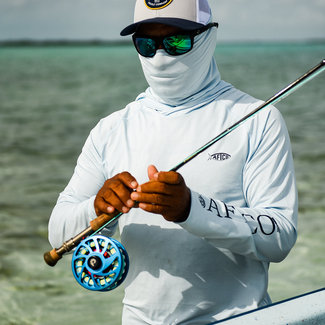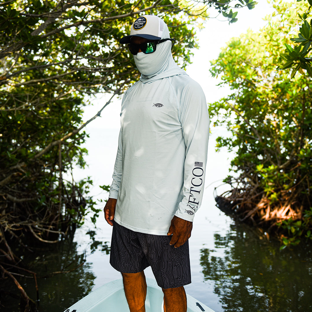AFTCO developed the Yurei Hooded Performance fishing shirt with Air-O Mesh, a super breathable fabric applied throughout the shirt. Yurei was designed to provide all day comfort, breathability and sun protection during warm climates and high humidity. Other key features include UPF 40 sun protection, quick dry moisture wicking, 3M stain release, and thumb loops. Full hood and face mask add additional protection from the sun.