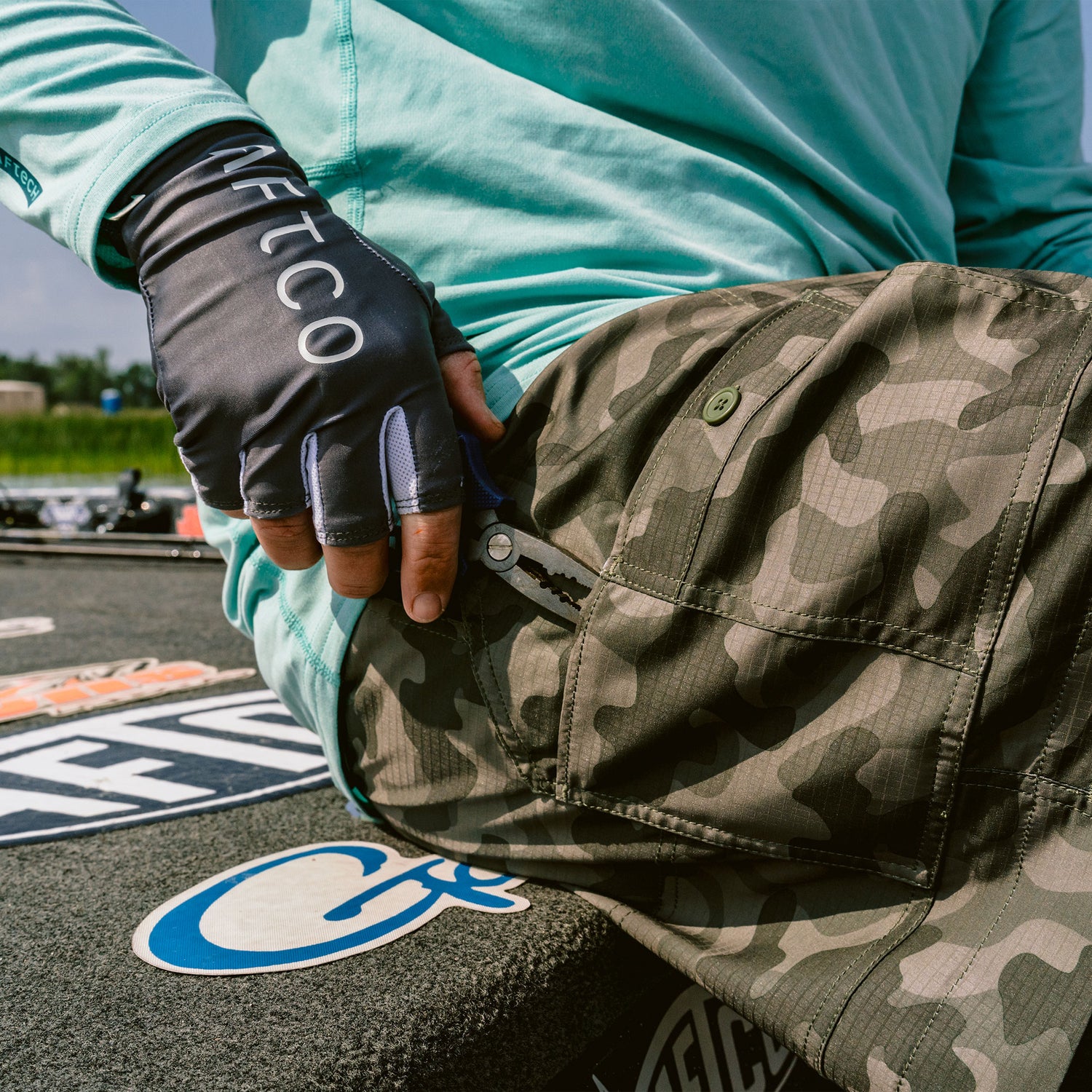 The Camo Fishing shorts are inspired by the M01 - The Original Fishing Short, a popular fishing short amongst all anglers. Made with a durable poly, elastane ripstop dobby, you will experience the same durability that you expect from our AFTCO original fishing shorts. The Camo Original Fishing Short has been treated with a stain resistant treatment and features an extremely strong, but lightweight 2-way stretch fabric. These shorts include plenty of pocket storage including a Cordura lined pliers pocket.