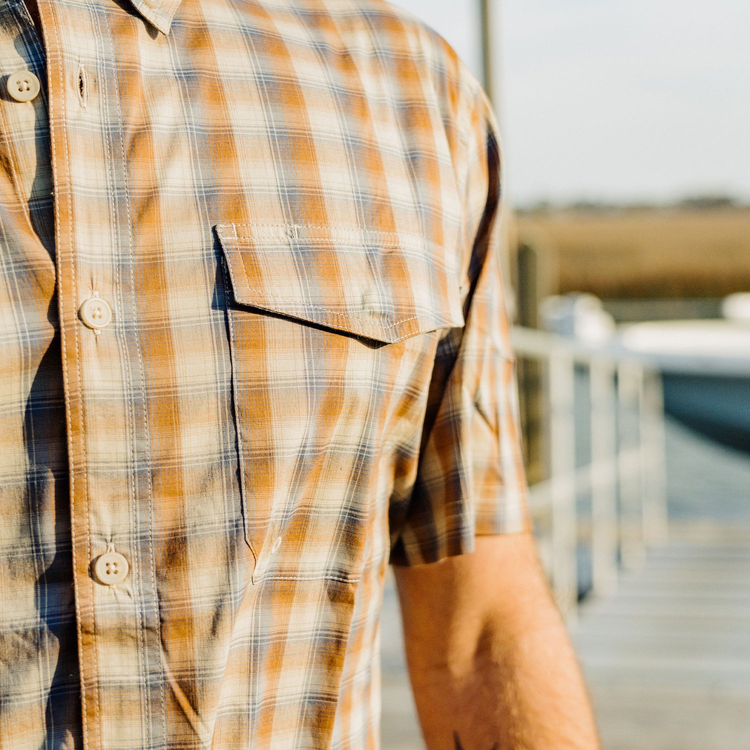 Whether sitting portside or starboard, comfort on the water is critical, and the Portside long-sleeve button-down fishing shirt fits the bill. It’s a stretch woven with UPF 50 sun protection and has double back vents to promote airflow and keep anglers cool. Portside is a DWR stain-resistant fishing shirt designed to shed slime, spray, and fish blood quickly. This classic fit woven has a hidden lens cleaner at the hem, perfect for keeping your sunglasses clean. Click here to learn how to choose the right fishing shirt