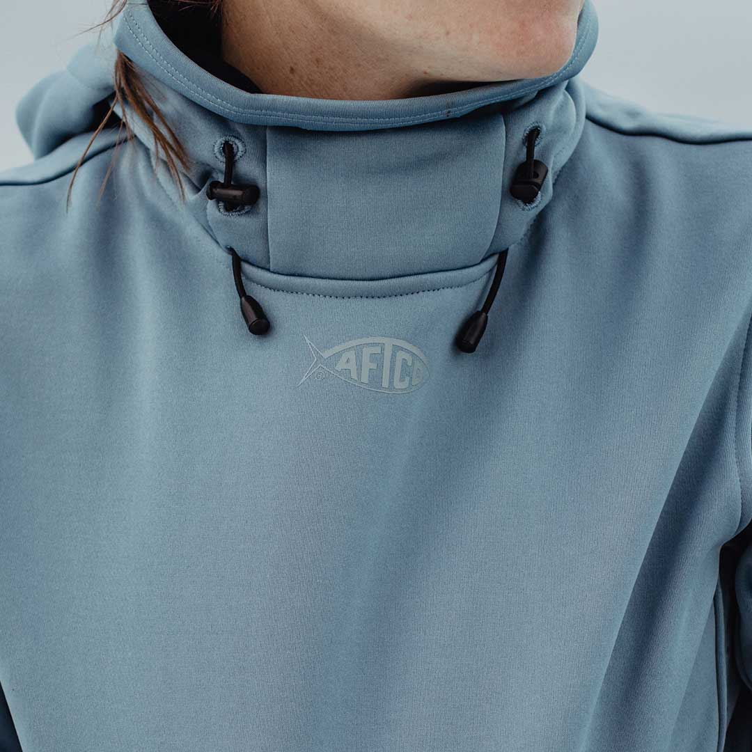 The best fishing sweatshirt ever built for women! Designed for the female angler, the Reaper women's fishing hoodie delivers with functional features like an integrated face mask and neck warmer, laser cut ventilation on the mask and underarm areas, adjustable hood with a convenient anchoring system, ultra-quite pocket snaps, and mid-hip length. The toasty 100% microfleece fabric boasts stain release and DWR.
